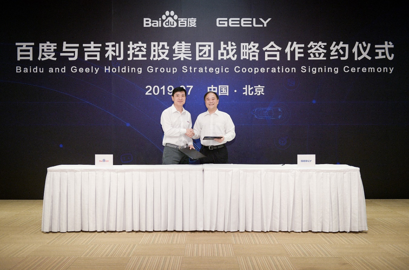 2019年7月3日,“Baidu Create 2019”百度AI开发者大会在北京国家会议中心拉开帷幕。吉利控股集团董事长李书福亲临现场,和百度创始人、董事长兼首席执行官李彦宏共同宣布,吉利控股与百度将就智能网联、智能驾驶、智能家居、电子商务等AI技术在汽车、出行领域应用展开全面战略合作,共同研究、探索“最强汽车+最强AI”,携手加速中国智能汽车的大规模普及,引领全球智能出行体验。