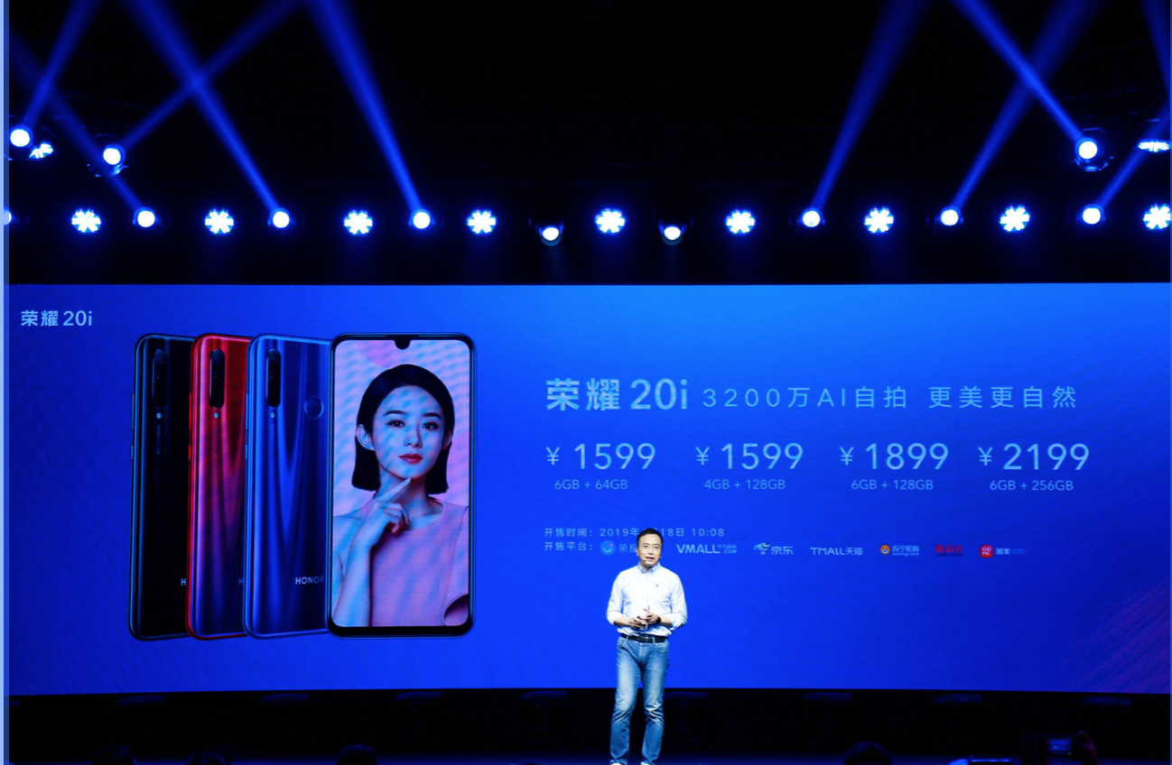 价格方面,荣耀20i的4+128GB版本售价为1599元;6+64GB版本售价为1599元;6+128GB版本售价为1899元;6+256GB版本售价为2199元。4月18日正式开售,荣耀20iAAPE特别版6GB+256GB售价为2199元,将在今年5月上市。