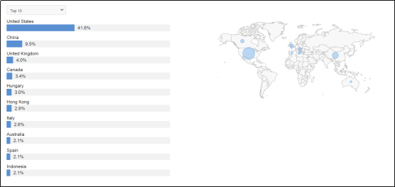 图15:《流浪地球》信息全球分布(其中China为来自中国境内的非中文信息)