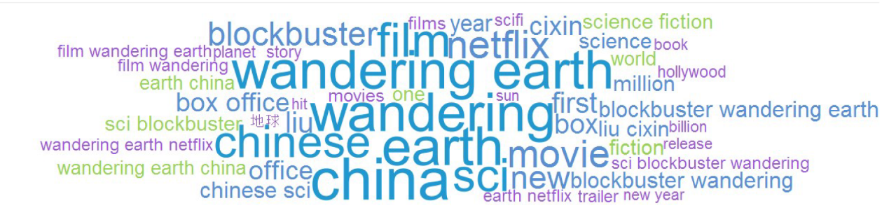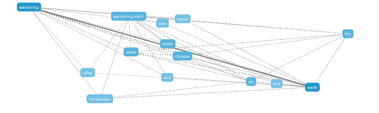 与《流浪地球》同时被提及、关联度最高的热词是“Netflix”“Liu Cixin(刘慈欣)”“China/Chinese”。