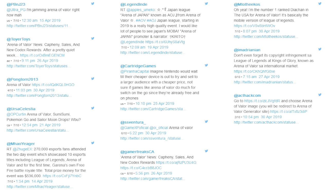 图22:Twitter发布《王者荣耀(国际版)》信息较多的账号