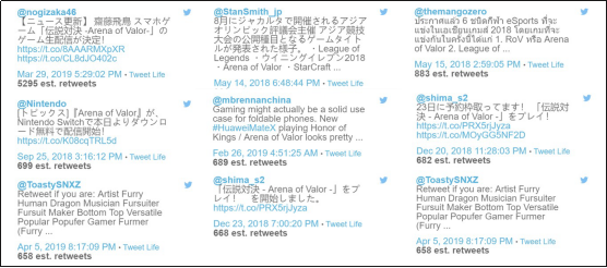 图23:Twitter转发《王者荣耀(国际版)》信息较多的账号