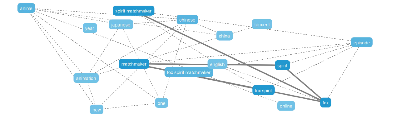 海外用户在提到《狐妖小红娘》时也较多提到“Chinese”和“Japanese”,这主要是因为海外动漫爱好者在关注《狐妖小红娘》的同时,也常会提及日本经典动漫《火影忍者》和《龙珠》等作品。